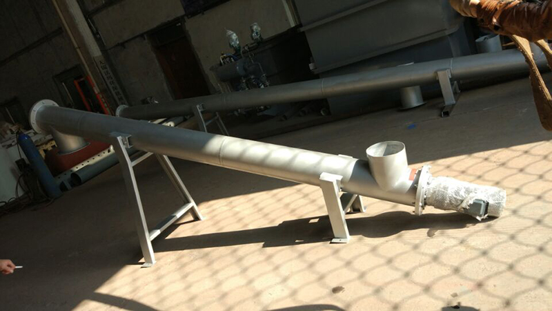 當螺旋軸轉動時,由于物料的重力及其與槽體壁所產生的摩擦力,使物料只能在葉片的推送下沿著輸送機的槽底向前移動,其情況好像不能旋轉的螺母沿著旋轉的螺桿作平移運動一樣。物料在中間軸承的運移,則是依靠后面前進著的物料的推力。所以,物料在輸送機中的運送,完全是一種滑移運動。為了使螺旋軸處于較為有利的受拉狀態,一般都將驅動裝置和卸料口安放在輸送機的同一端,而把進料口盡量放在另一端的尾部附近。 旋轉的螺旋葉片將物料推移而進行輸送,使物料不與螺旋輸送機葉片一起旋轉的力是物料自身重量和螺旋輸送機機殼對物料的摩擦阻力。葉片的面型根據輸送物料的不同有實體面型、帶式面型、葉片面型等型式。螺旋輸送機的螺旋軸在物料運動方向的終端有止推軸承以隨物料給螺旋的軸向反力,在機長較長時,應加中間吊掛軸承。